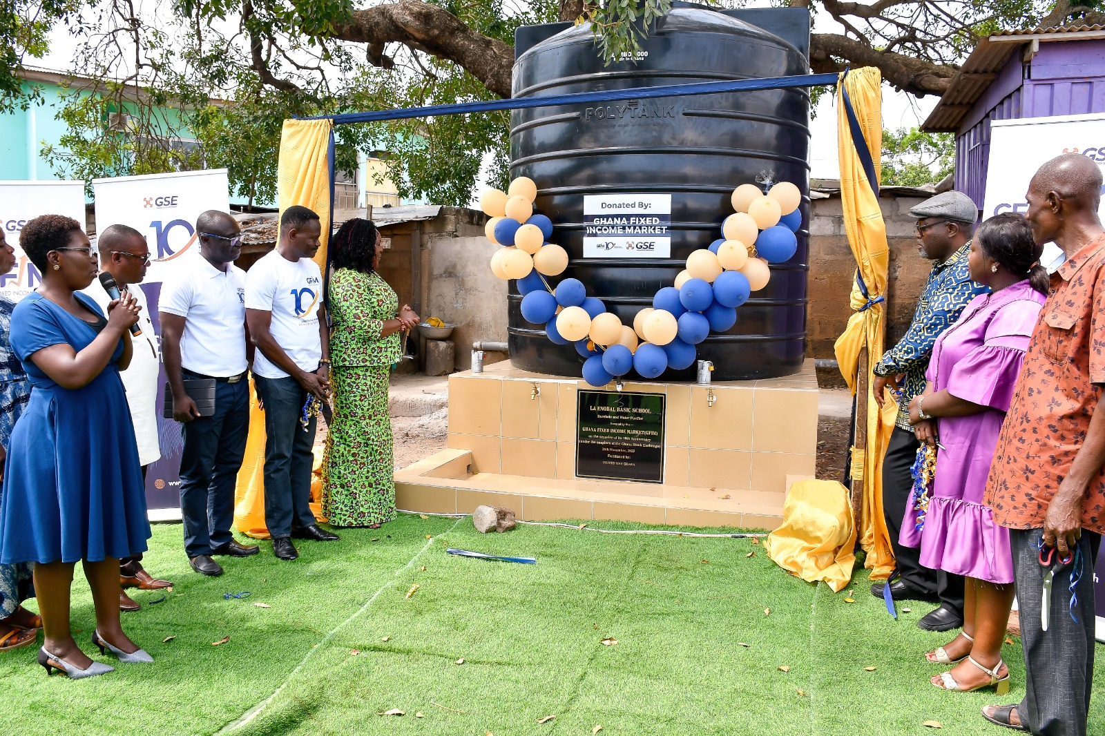 Accra, Ghana// – The Ghana Fixed Income Market (GFIM), one of the markets of the Ghana Stock Exchange (GSE), has commissioned a Borehole and Water Purifier for the La Enobal Basic School in Accra as part of activities marking its 10th anniversary.