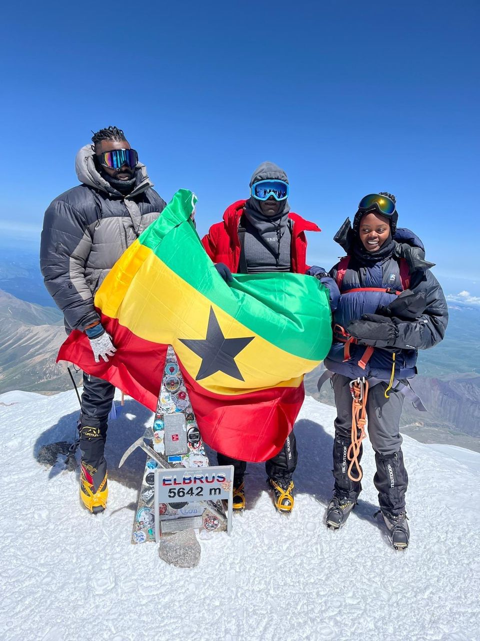 On his journey to conquer Elbrus, Michael met two other Africans, Akin from Nigeria, and Nancy from Kenya, and they did the climbing together.
