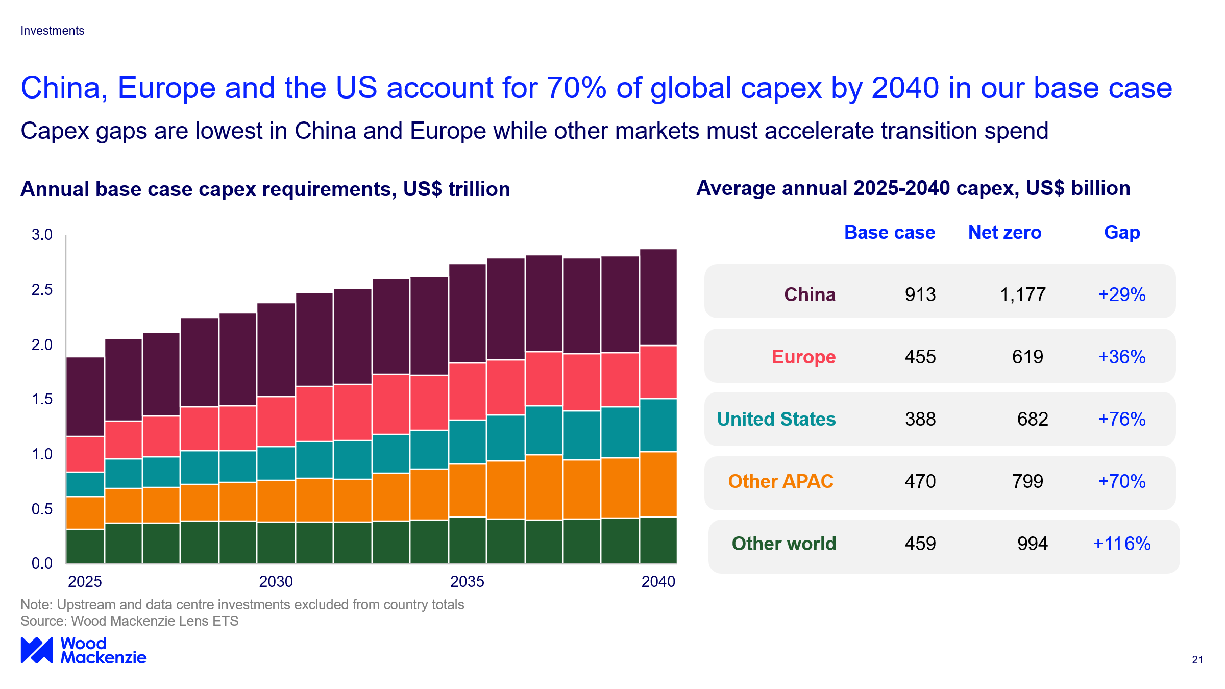 China, Europe, and the US account for 70% of global capex by 2040 in the base case: