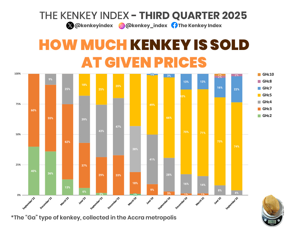 So who is correct? Both and neither. Yes, one can indeed find kenkey at GH₵7 on the streets. But it is also true that it is rare (only 22% is sold at that price in Accra). In the final analysis, it is the people of Ghana who won in the last quarter as the average weight of kenkey increased. The Kenkey Index will continue collecting data to see if this trend continues to the end of 2025.