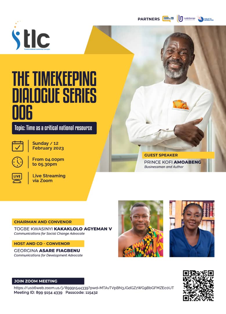 The event will also be live on the Facebook pages of Georgina Asare Fiagbenu and TLC. Capt Prince Kofi Amoabeng (rtd) is expected to speak on the topic; ‘’Time As a Critical National Resource.’’