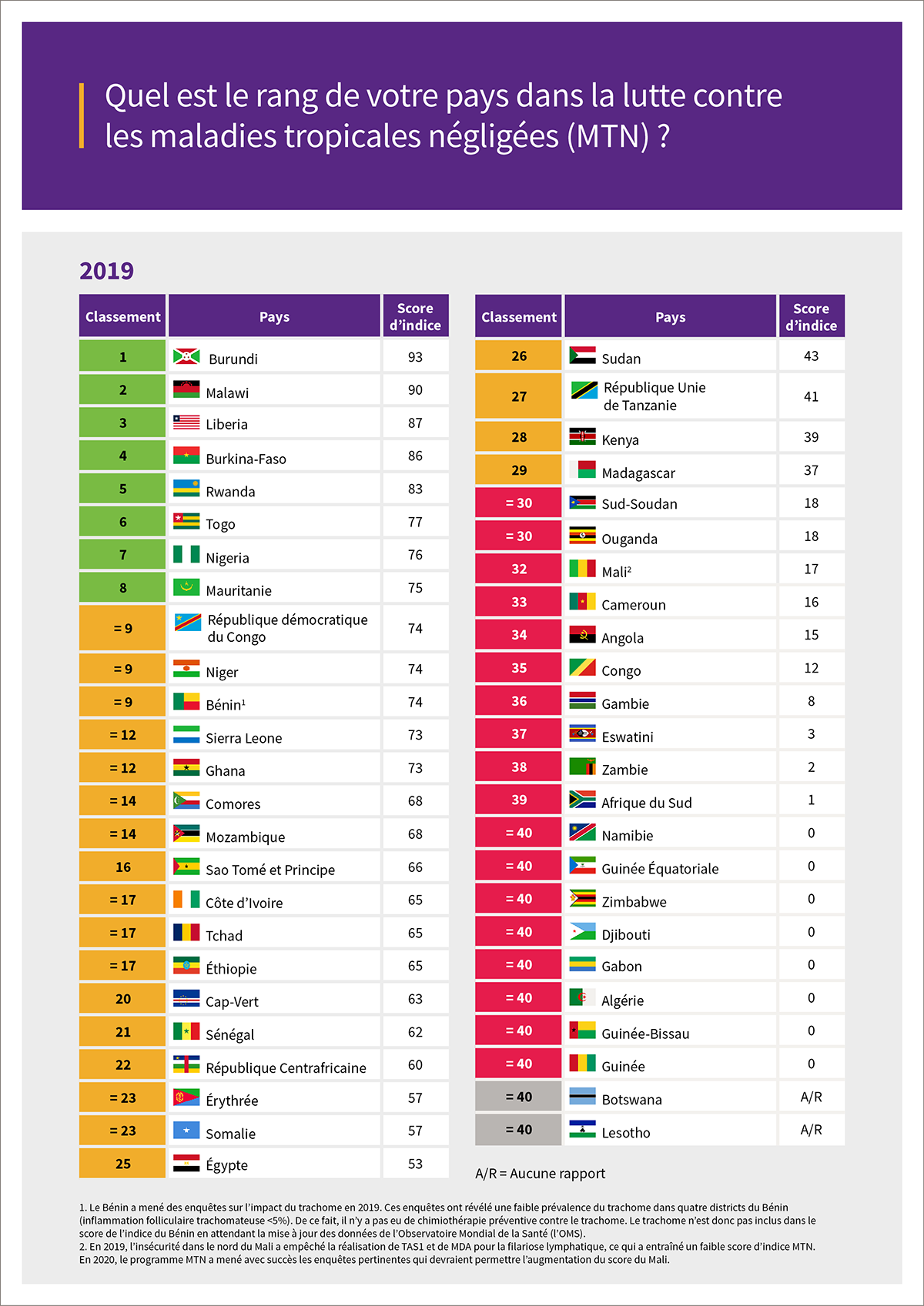 Overall, the latest NTD league table shows positive progress on beating NTDs in Africa. Compared to 2015, fewer people require treatment for at least one NTD.