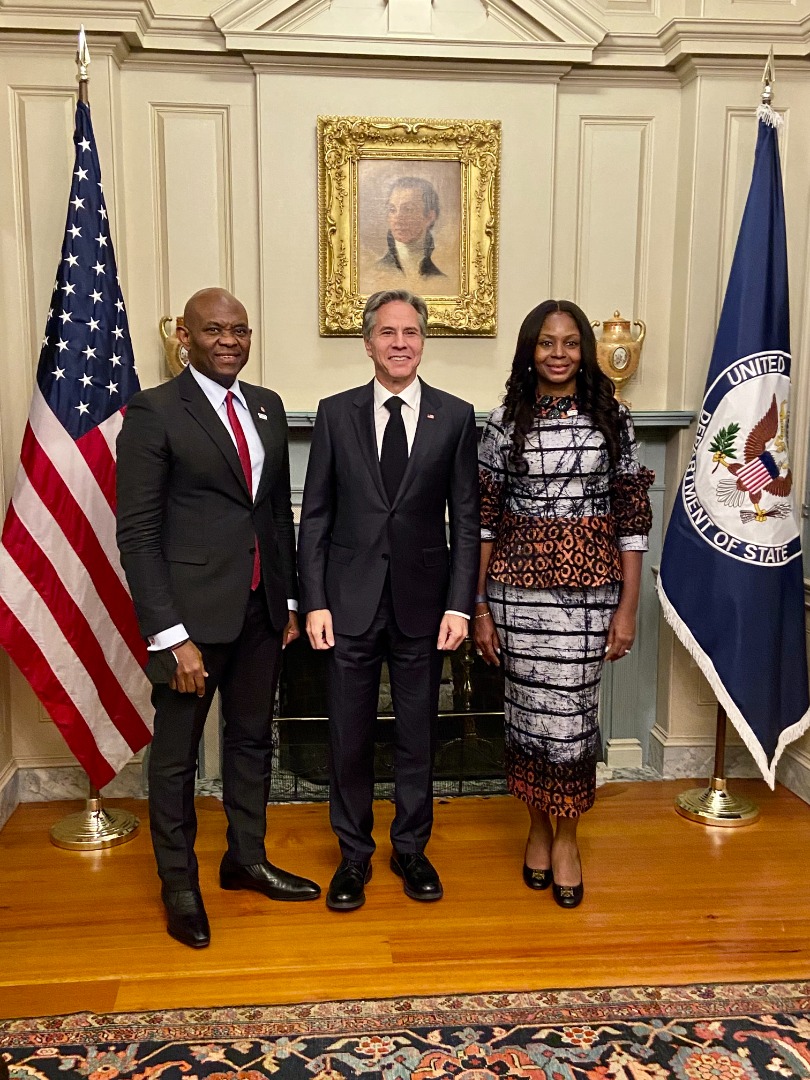 Founder, Tony Elumelu Foundation and Group Chairman, United Bank for Africa(UBA), Tony Elumelu, CFR; United States Secretary of State, Anthony Blinken; and Co-Founder, Tony Elumelu Foundation, Dr. Awele Elumelu, at the opening reception hosted by U.S. State Department and Tony Elumelu Foundation, at the ongoing U.S.-Africa Leaders’ Summit in Washington on Monday.