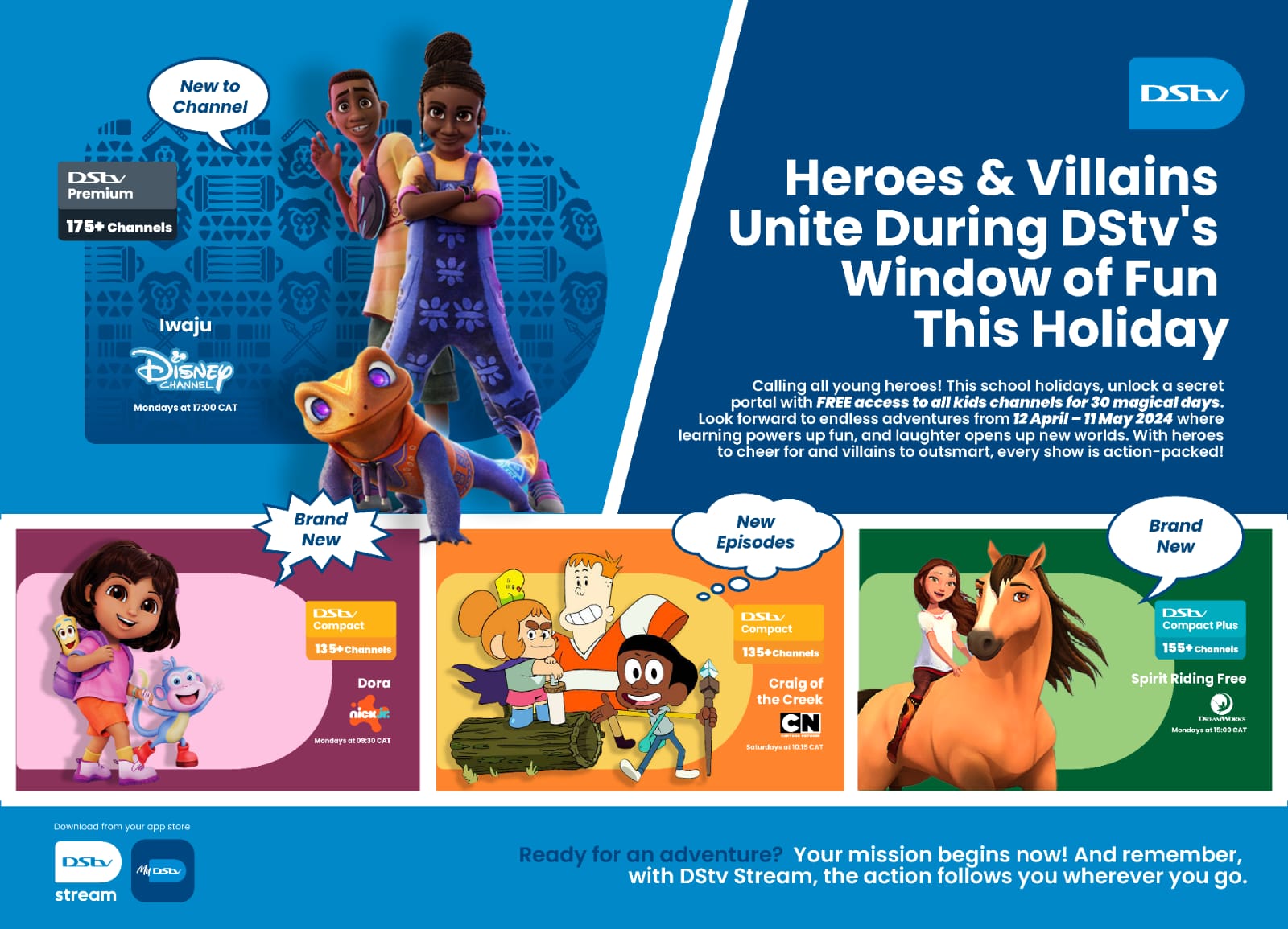 The school bells may be resting, but DStv entertainment bells are ringing even louder! This school holiday season, we’re gifting DStv Access customers and up with 30 days of access to all our kid’s channels, offered at no additional cost from Friday 12 April to Saturday 11 May. It’s our way of adding more fun and more choice to your family’s holiday entertainment.